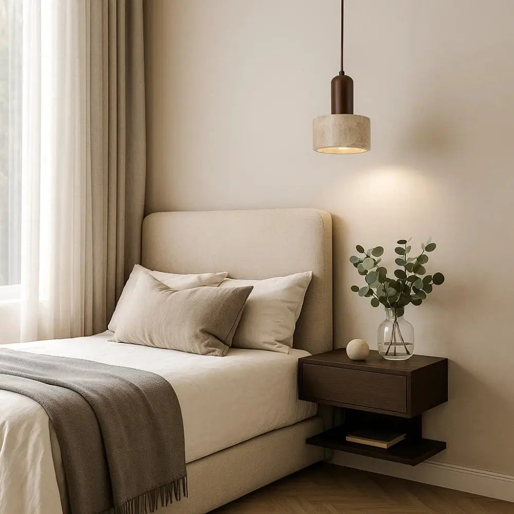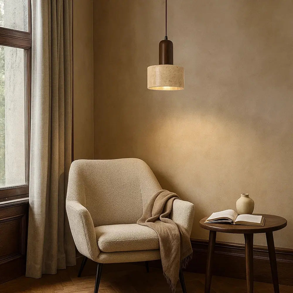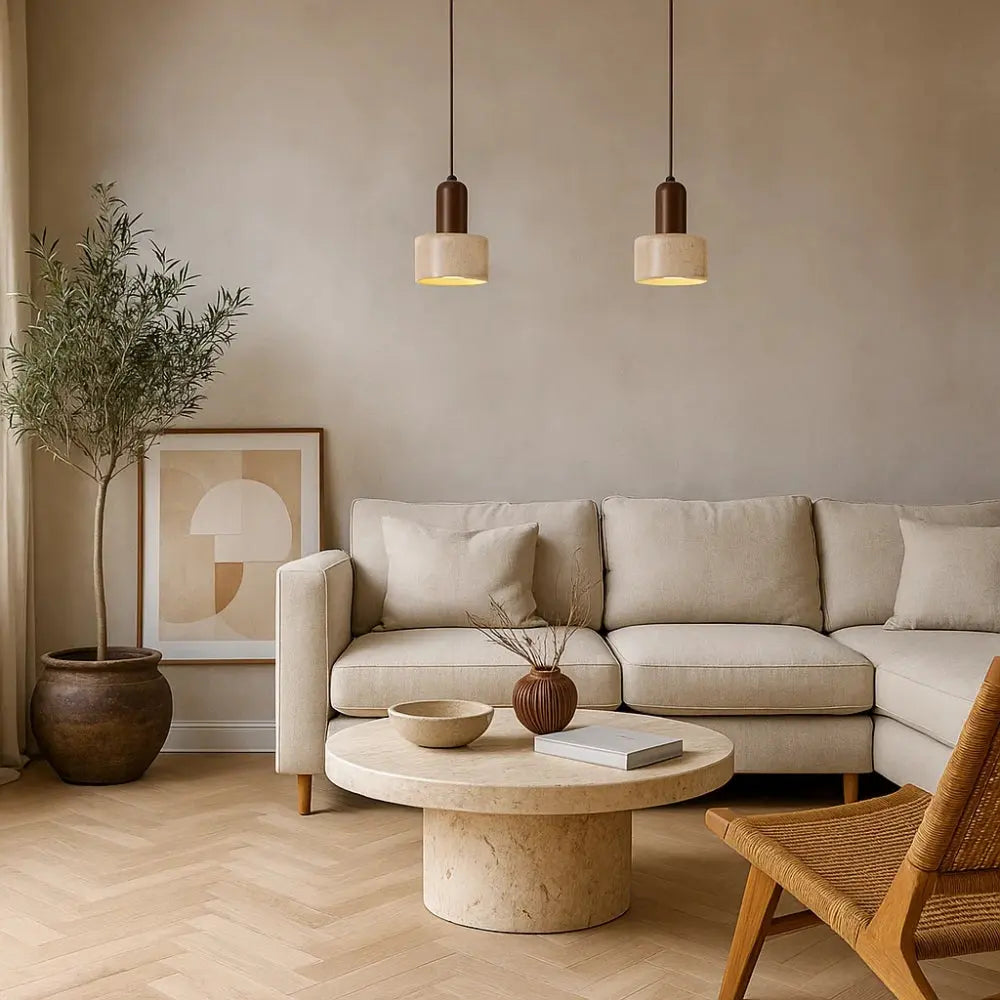 Tavernea ist mehr als nur eine Pendelleuchte. Sie bringt die natürliche Schönheit von Travertin in eine klare, zeitlose Form und verleiht dem Raum eine ruhige, warme Ausstrahlung. Das sanfte Licht unterstreicht die mineralische Textur des Steins und schafft eine entspannende Atmosphäre mit architektonischer Raffinesse.