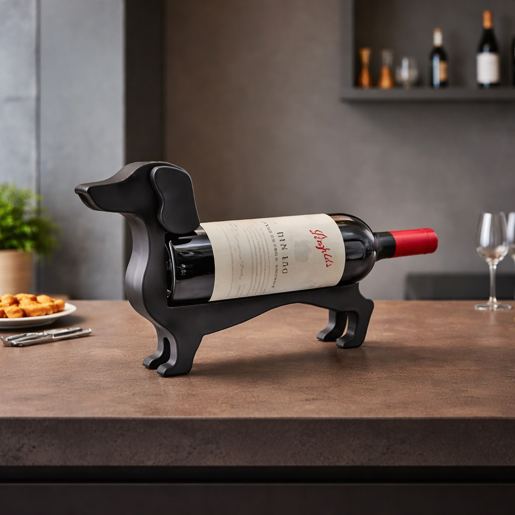 Der WeinDackel vereint Humor, Design und Funktionalität in einer charmanten Form. Mit seiner charaktervollen Silhouette bringt er Leichtigkeit und Persönlichkeit in den Raum und präsentiert Ihre Weinflasche auf eine originelle, zugleich elegante Weise.